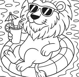 בדף הצביעה הזה תמצאו אריה עם משקפי שמש, יושב בתוך בריכה עם כוס שתייה ביד. זו הזדמנות נהדרת להראות לילדים שגם חיות חזקות יכולות להיות רגועות וליהנות. אפשר לצבוע את האריה בצבעים קלאסיים, אבל גם לשחק עם הדמיון וליצור אריה בצבעים מיוחדים ומצחיקים.