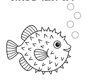 בדף הזה דג אבו נפחא מופיע לבדו, עם קווים ברורים ובועות בצד, כך שכל תשומת הלב נשארת עליו. זה נותן לילדים הזדמנות להתמקד במבנה המיוחד של הגוף, בסנפירים, בקוצים ובצורה העגלגלה שהופכת אותו לכל כך מעניין. אפשר לצבוע את הדג בגוונים של צהוב, כתום, חום, אפור, ירוק או כחול, ואפשר גם לבחור צבעים חופשיים יותר כדי להפוך את הדף לצבעוני במיוחד. בגלל שהציור נקי וברור, הוא מתאים גם לילדים צעירים וגם למי שאוהב לצבוע בלי יותר מדי עומס.