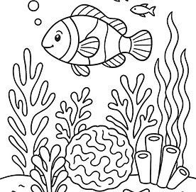 דגים הם מבעלי החיים שהרבה ילדים אוהבים לצבוע, ובציור הזה הם מופיעים בתוך עולם צבעוני ומעניין של ים וקרקעית. לכן הכנו דף צביעה של דג בין האלמוגים, שמתאים לילדים שאוהבים חיות ים ורוצים ליהנות מציור ברור, עשיר ונעים לצביעה. השילוב בין הדג הגדול לבין הצמחים, האלמוגים והדגים הקטנים מסביב יוצר תמונה מלאה יותר ומושכת לעין.