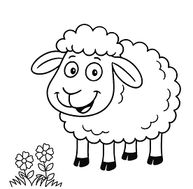 יש דפי צביעה שמיד מעלים חיוך, והציור הזה הוא בדיוק כזה. בתמונה מופיעה כבשה חייכנית ומתוקה עם צמר רך ומלא, ולידה פרחים קטנים שמוסיפים עוד יופי ועדינות לדף. זהו ציור נעים, פשוט ומזמין, שמתאים מאוד לילדים שאוהבים חיות משק ורוצים ליהנות מצביעה רגועה, כיפית ומלאת דמיון.