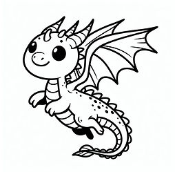 בדף הצביעה הזה מופיע דרקון מעופף, עם כנפיים פתוחות, גוף קליל והבעה שמחה. הוא נראה כאילו הוא מרחף בשמיים, נהנה מהתעופה ומהחופש שסביבו. זהו דף צביעה שמלא באנרגיה, ומתאים לילדים שאוהבים דמויות פעילות, סיפורי פנטזיה והרפתקאות בעולם קסום.