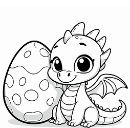 דרקון צעיר ליד ביצה – דף צביעה עדין להדפסה לילדים
